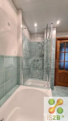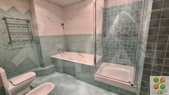 - Из гостиной переходим в межкомнатный холл. Там находятся три раздельных жилых комнаты (15,1 - 20,1 - 16,4 кв.м) и основной совмещенный сан/узел (7,6 кв.м, с отдельно стоящей душевой, белой ванной и беде). В жилых комнатах потолки с шумоизоляцией.