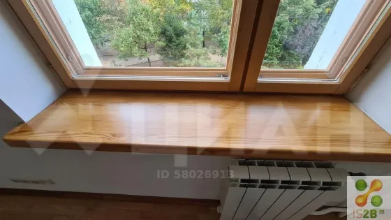 - Подоконники, цвета рам, также изготовлены из дерева. Все окна квартиры выходят во двор. Все межкомнатные двери выполнены из массива дерева.