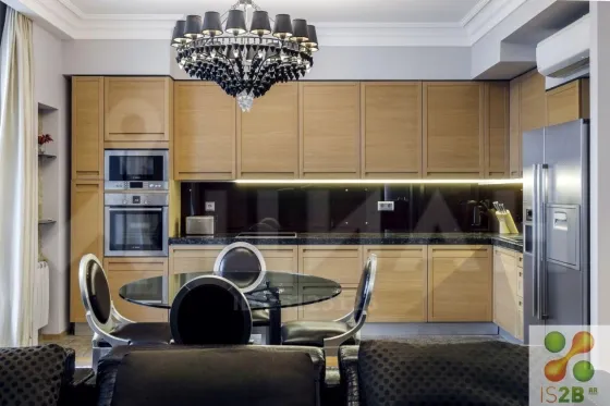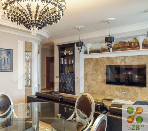 Функциональной планировкой квартира разделена на гостевую и спальную зоны: просторная кухня-гостиная совмещенная с лоджией 37+10 кв.м., 3 спальных комнаты со встроенными итальянскими шкафами, 2 совмещенных с/у, гардеробная-прачечная.