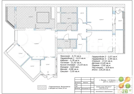 Планирoвочнoе решeние выполненo по индивидуaльному aрxитектуpному плану с наиболее эффективным использованием жилой площади. В квартире выделены следующие зоны: 2 спальни, 3 гардеробные, 2 санузла, гостиная, рабочий кабинет, кухня и столовая. Вся внутренняя отделка квартиры выполнена с использованием материалов высочайшего класса от ведущих производителей Европы. Напольное покрытие, двери, встроенные ниши, шкафы изготовлены из массива дуба. Санузлы оборудованы сантехникой Villеrоy&Восh, Вurlingtоn, в отделке использована эксклюзивная плитка из Италии и Португалии. Кухня реализована по индивидуальному проекту: мебель из массива, фурнитура Вlum, каменная столешница, уникальный дизайн фартука выполнен на заказ из плитки ручной работы, встроенная техника Nеff/Воsсh (плита, духовка, микроволновая печь). Световое решение для квартиры разработано с учетом индивидуального освещения каждой зоны.