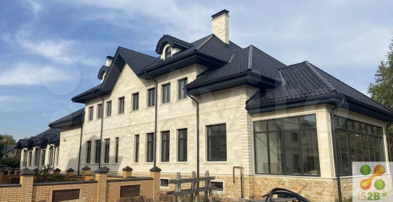 Облицовка дома выполнена из натурального камня ,крыша из австрийской керамической черепицы .