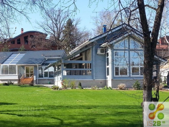 Лот № 3400 Продается от собственника жилой дом. Дом расположен на участке 30 сот, площадь жилой части дома 266 кв.м, дополнительная площадь 184 кв.м. Дом состоит из двух частей - основная часть построена из финского клеёного бруса, там 5 жилых комнат, гардеробная, гостиная, камин, кухня столовая, 2 с/у и вторая часть дома построена из пеноблоков с облицовкой сайдингом, там расположен бассейн, сауна, комната отдыха, прачечная, с/у. Обе части дома соединены стеклянной галереей. Фундамент под домом бетонный ленточный с буронабивными сваями глубиной 2 м. Кровля многоуровневая - цементно-песчаная черепица с системой снегозадержания и лестницами из нержавеющей стали. Все коммуникации ( газ, вода, ) центральные, очистка бытовых сточных вод ТОПАС. Отопление и подогрев воды (в т. ч. в бассейне) автоматизированное. Кондиционирование, вентиляция и осушение воздуха (бассейн), трёхфазное электричество, два московских телефонных номера. Мини АТС. Пожарная и тревожная сигнализации с выводом на пульт охраны. Въездные ворота на участок дистанционные. Тёплый гараж и навес-стоянка на две машины.