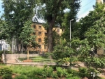 Уютная студия правильной прямоугольной формы с двумя пластиковыми окнами, выходящими на запад. Очень высокие потолки -3,7 метра. Тихий ухоженный двор, окруженный зеленью. Своя закрытая парковка, в доме консьерж. Детская площадка во дворе.