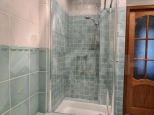 - Из гостиной переходим в межкомнатный холл. Там находятся три раздельных жилых комнаты (15,1 - 20,1 - 16,4 кв.м) и основной совмещенный сан/узел (7,6 кв.м, с отдельно стоящей душевой, белой ванной и беде). В жилых комнатах потолки с шумоизоляцией.