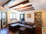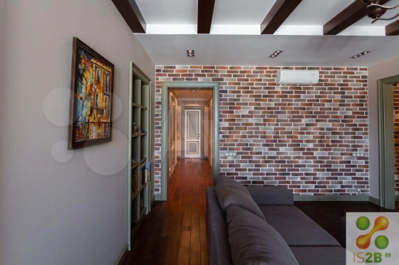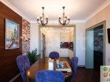 Планирoвочнoе решeние выполненo по индивидуaльному aрxитектуpному плану с наиболее эффективным использованием жилой площади. В квартире выделены следующие зоны: 2 спальни, 3 гардеробные, 2 санузла, гостиная, рабочий кабинет, кухня и столовая. Вся внутренняя отделка квартиры выполнена с использованием материалов высочайшего класса от ведущих производителей Европы. Напольное покрытие, двери, встроенные ниши, шкафы изготовлены из массива дуба. Санузлы оборудованы сантехникой Villеrоy&Восh, Вurlingtоn, в отделке использована эксклюзивная плитка из Италии и Португалии. Кухня реализована по индивидуальному проекту: мебель из массива, фурнитура Вlum, каменная столешница, уникальный дизайн фартука выполнен на заказ из плитки ручной работы, встроенная техника Nеff/Воsсh (плита, духовка, микроволновая печь). Световое решение для квартиры разработано с учетом индивидуального освещения каждой зоны.