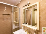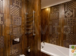 С точки зрения инженерии: регулируемая подача горячей воды в отопительные приборы, проточный водонагреватель 18 кВт, обогрев всех плиточных напольных покрытий, датчики протечки, отдельные автоматы на каждую зону электропотребления, два кондиционера, регулировка яркости освещения каждой зоны в квартире.