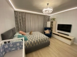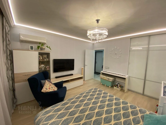 Лот № 3720 В квартире произведён капитальный ремонт с заменой всех коммуникаций и электропроводки. Использованы качественные отделочные материалы (стены окрашены, итальянский керамогранит и плитка, немецкие смесители и сантехника, встроенные шкафы). Кухня оснащена всем необходимым: посудомоечная машина, встроенная микроволновая печь, вся техника Siemens (Германия). В кухне, коридоре, ванной комнате и санузле установлен тёплый пол. Просторная гардеробная комната. Кондиционер. Охранная сигнализация.