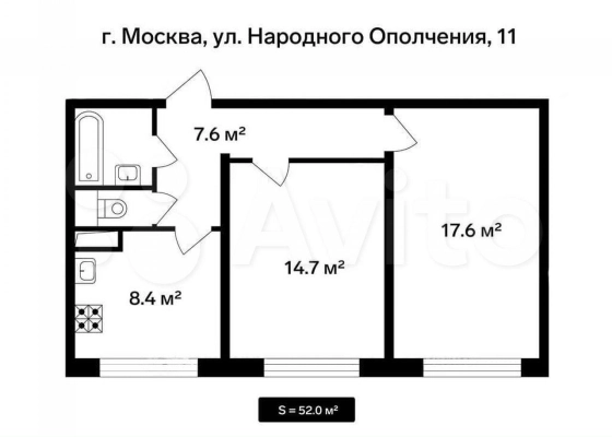 | Площадь, кв.м. | 52 |