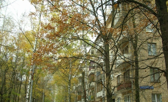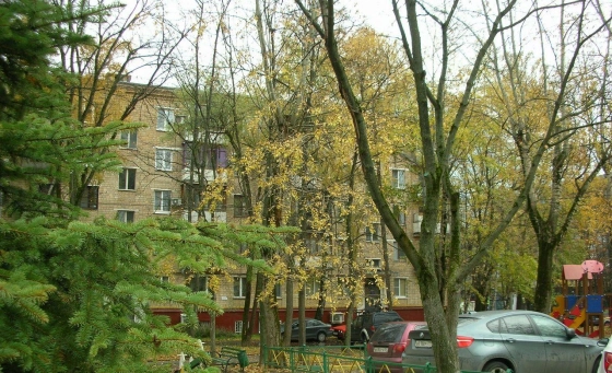 Дом сделан из качественного и красивого кирпича, находится в хорошем состоянии. Соседи приятные люди. Подъезд чистый. Балкон расположен среди деревьев. Очень зелено и уютно. Во дворе летают синички. Окна выходят на дорогу. Она тихая и спокойная, так как небольшая и так как машин на ней немного. Рядом с нашим домом есть пешеходный переход, что делает движение более спокойным и безопасным. Со стороны дороги наш этаж выглядит практически как третий за счет высокого цокольного этажа (хотя номинально он второй) и отделен от дороги деревьями, среди которых легко и приятно дышится. Недалеко красивый лес с соснами, березами и дубами. Экологическая обстановка одна из лучших в Москве, что хорошо для здоровья, отдыха и развития детей.