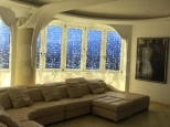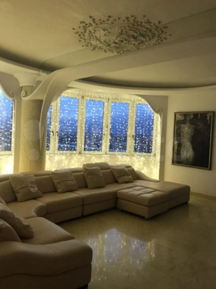 Все окна кроме одного, выходят на набережную. Отделка из высококачественных импортных материалов. Подогреваемые водяные полы во всей квартире. 100 метров полов из итальянского мрамора. Арочные двери и витражи делали под заказ. Люстры из натуральной бронзы . Гостиная объединена с кухней и зимним садом, большой санузел с уникальной дизайнерской планировкой и гостевой санузел. Отделка всех сан узлов итальянской мозаикой. Удобная планировка позволила создать в квартире уникальную атмосферу, есть отдельная спальня со своим большим сан. узлом и изолированная комната, которая предназначена под хамам.