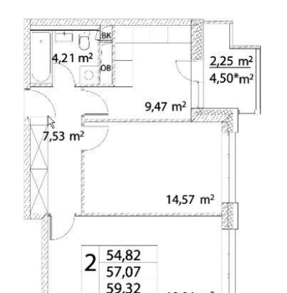 | Площадь, кв.м. | 57 |
