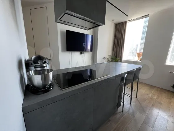 Лот № 4121 1-к. квартира, 41 м², 24/53 эт. продаётся в Москве. . Шикарная видовая однокомнатная квартира с видом на Москва-Сити. ЦАО. Прекрасная транспортная доступность, выезд на ТТК, пешая доступность до метро Шелепиха 2 мин (подземное и МЦК). 1 станция до Москва-Сити или 450м пешком. Рядом МЦД Тестовская. В квартире выполнен дизайнерский ремонт. Вся мебель сделана на заказ. Стоимость кухонного гарнитура (1,6млн без учета техники), остров облицован керамикой. Встроенная посудомойка, СВЧ, духовой шкаф, варочная панель фирмы Neff, встроенный винный шкаф, холодильник Liebherr. Кондицион...